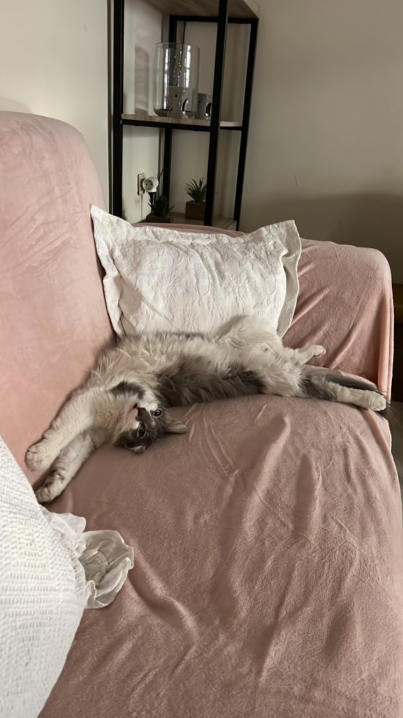 Mais Furia a un caractère particulier : elle ne se sent pas à l’aise avec les autres chats. Pour qu’elle puisse vivre sereinement, nous avons dû lui aménager un espace à elle seule dans la maison, où elle se sent en sécurité et entourée d’attention.