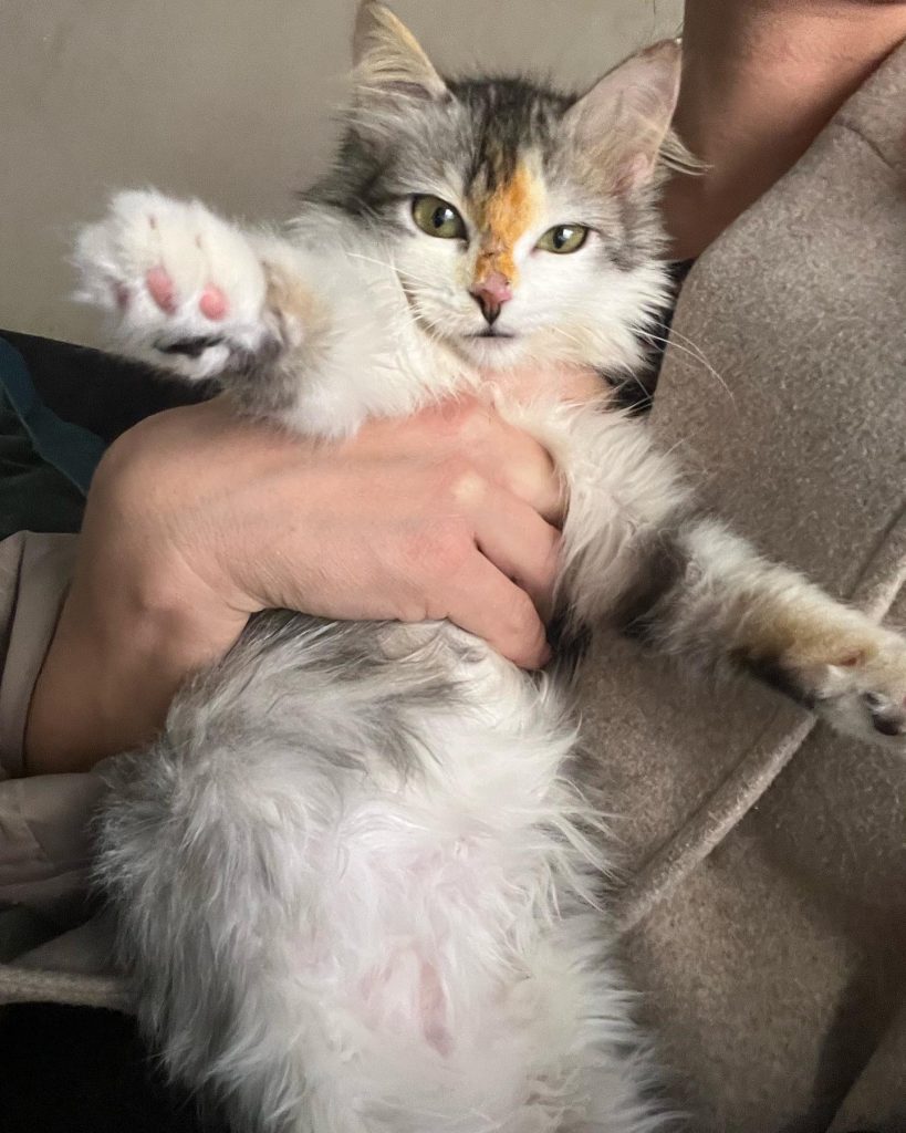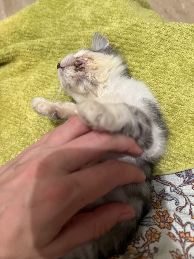 Sirena était un chaton extrêmement fragile. Elle tombait souvent malade, mangeait peu, restait faible. Chaque petite amélioration semblait être une victoire.