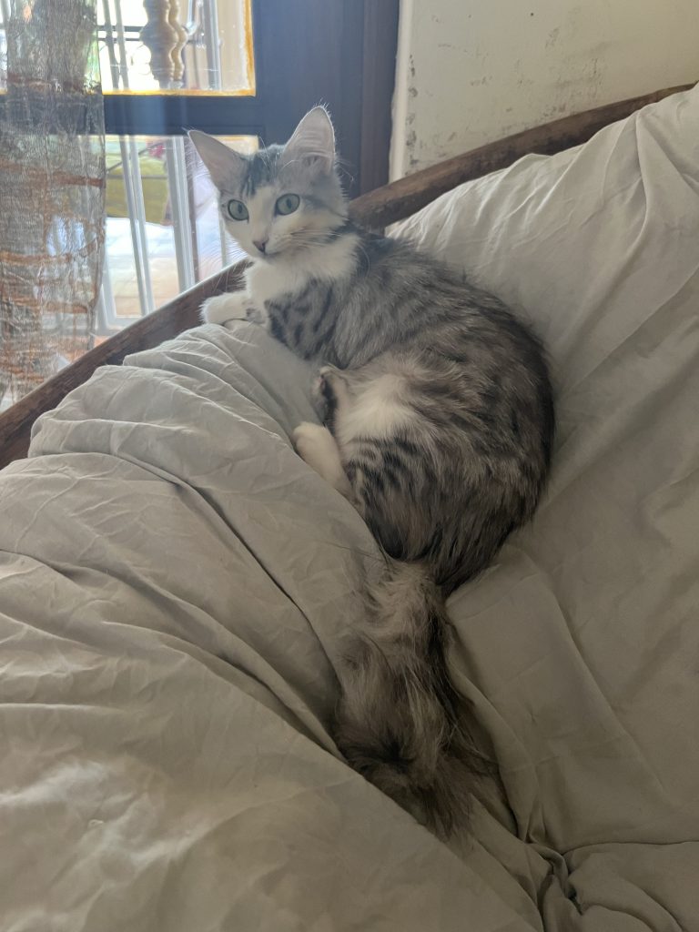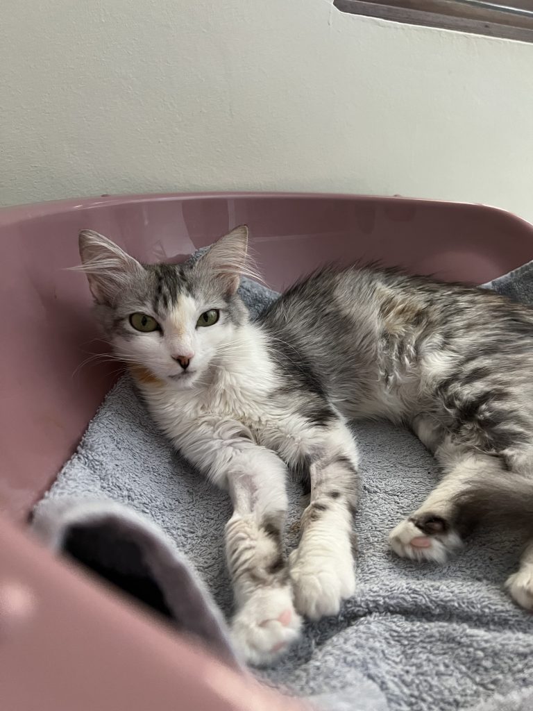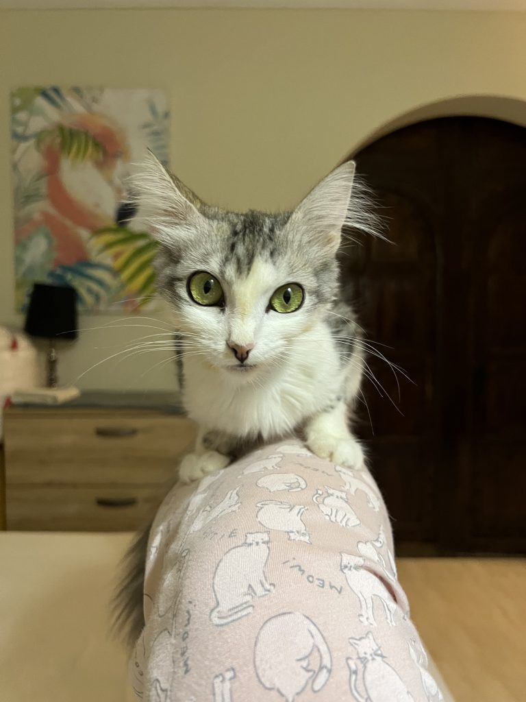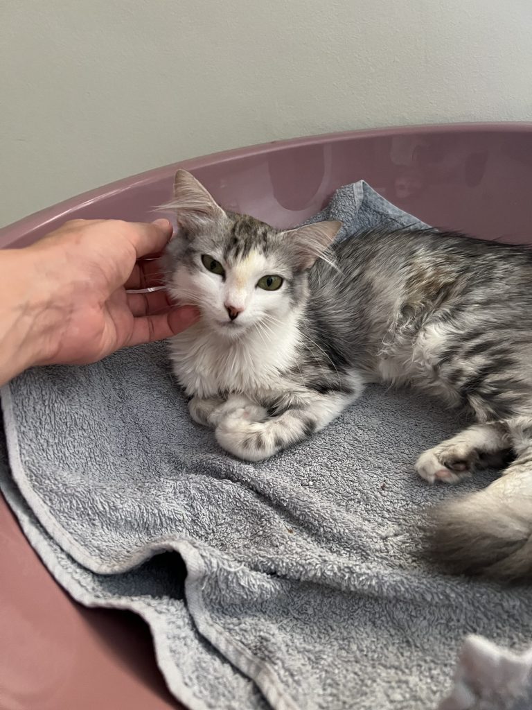 À l’âge de neuf mois, Sirena a développé une mycoplasmose féline (hémobartonellose), un parasite sanguin attaquant ses globules rouges, provoquant une forte fièvre à 41°C et une anémie sévère. Elle a suivi un traitement lourd à la doxycycline pendant 21 jours. Chaque jour comptait.
