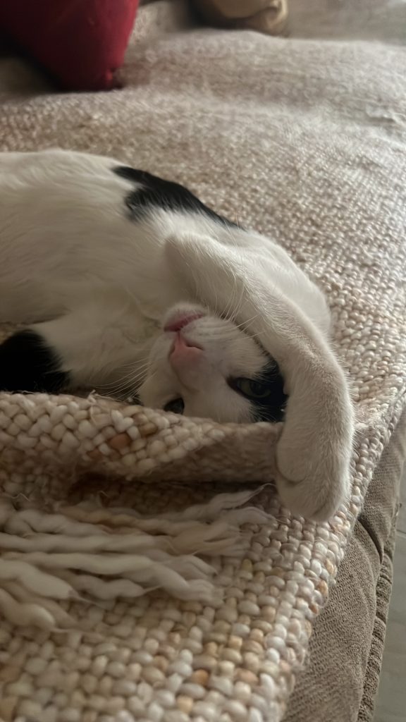 У неё есть дом, безопасность, тепло и человеческое присутствие, которое она так любит. Она по-прежнему остаётся такой же общительной, нежной и игривой, сохраняя в себе что-то детское, напоминающее о её любви к простым играм.
